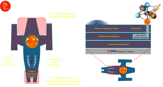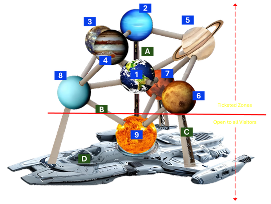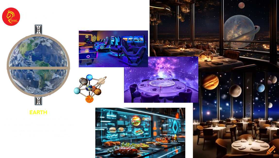 a. International Food Court, a revolving platform that offers a dynamic 360° view of orbiting planetary zones
